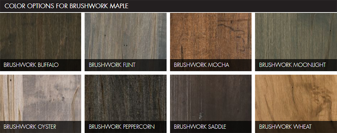 With five different wood species and a healthy number of finish options available for each, you can be sure you’ll find a beautiful finish colour and style to evoke the mood and look you’re looking to cultivate in your home. Options include: Brushwork Maple (8 varieties), Buxton Cherry (6 varieties), Heritage Maple (8 varieties), Solid Maple (18 varieties), and Solid Oak (6 varieties).
