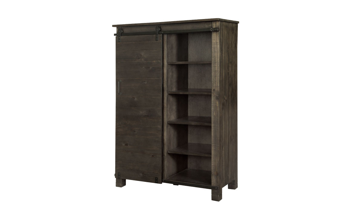 Transitional styling in a welcoming weathered charcoal finish and rustic aged iron hardware create Abington’s hospitable allure. In rustic pine solids, this hardworking collection is chock full of unique details, including sliding doors, and adjustable shelves. Rustic enough for a loft or retreat, yet sophisticated enough for the uptown industrialist, the Abington Door Chest is an ideal choice.