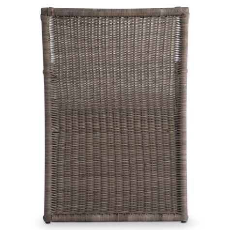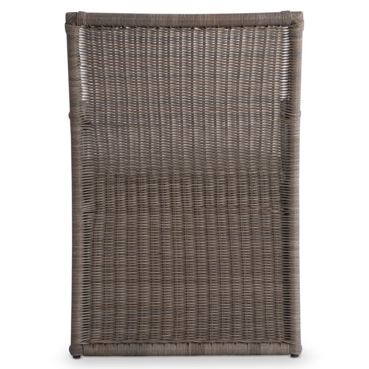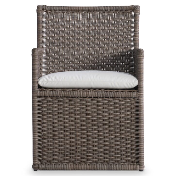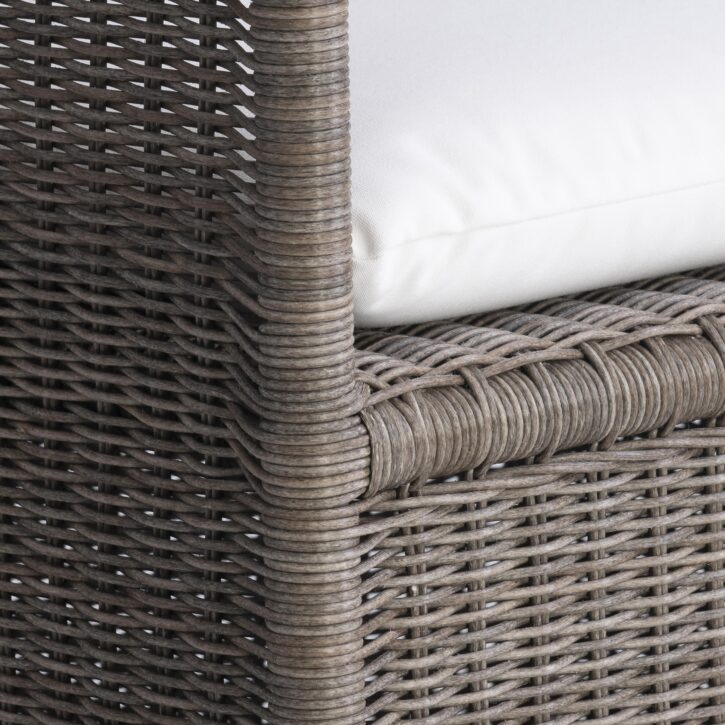 The Amelia outdoor arm chair takes a traditional woven design and gives it a very modern update. Lines are sleeker, and the woven panels go all the way to the floor. A seat cushion also offers comfort for this elevated profile.