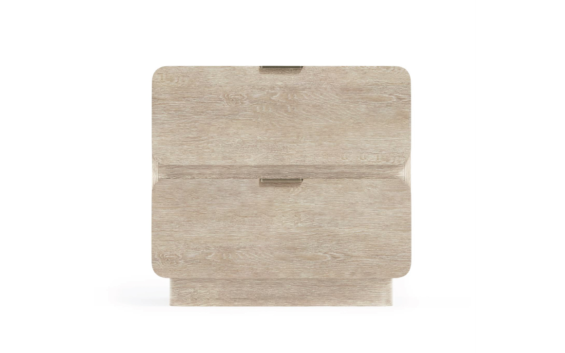 - Two pull-to-open drawers with cast aluminum tab pulls in Graphite finish.