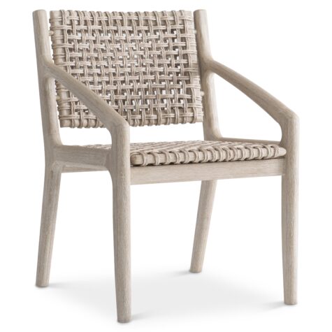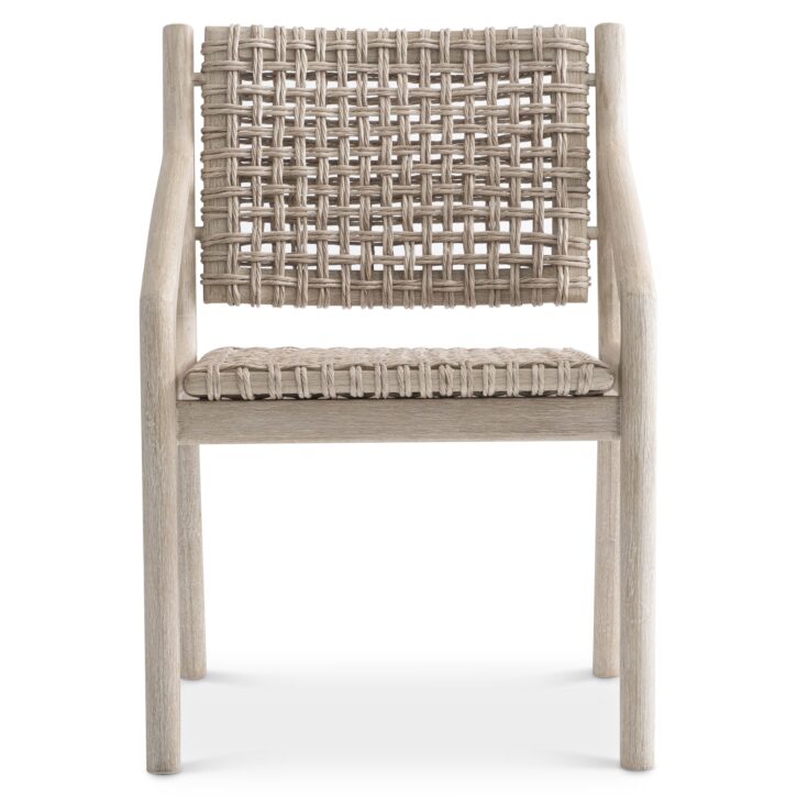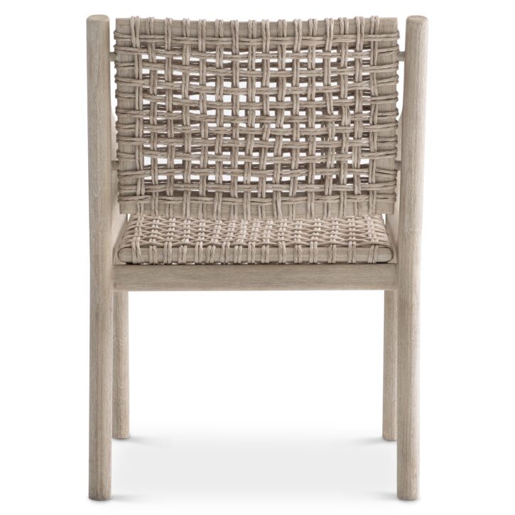 A distinctive open weave in all-weather wicker elevates the style of the laid-back Atlas arm chair. The teak frame has sleek and shapely lines that offer a stunning base. The mix of materials crafts a uniquely elegant style for outdoor living. Optional purchase fabric pad also available.