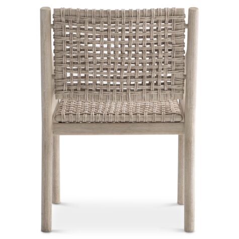 - Exposed teak in Sea Oat finish with woven seat and back of all-weather wicker in Pampas finish.