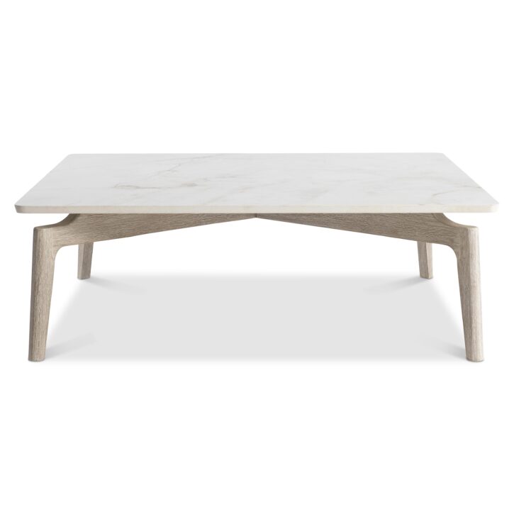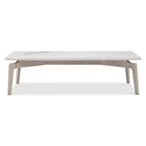 The base of the Aurora cocktail table takes a low-profile approach with sleek teak legs. A honed stone top seems to hover above the base with beautiful veining in Warm Shale finish. The textured wood in Sea Oat finish complements the stone.
