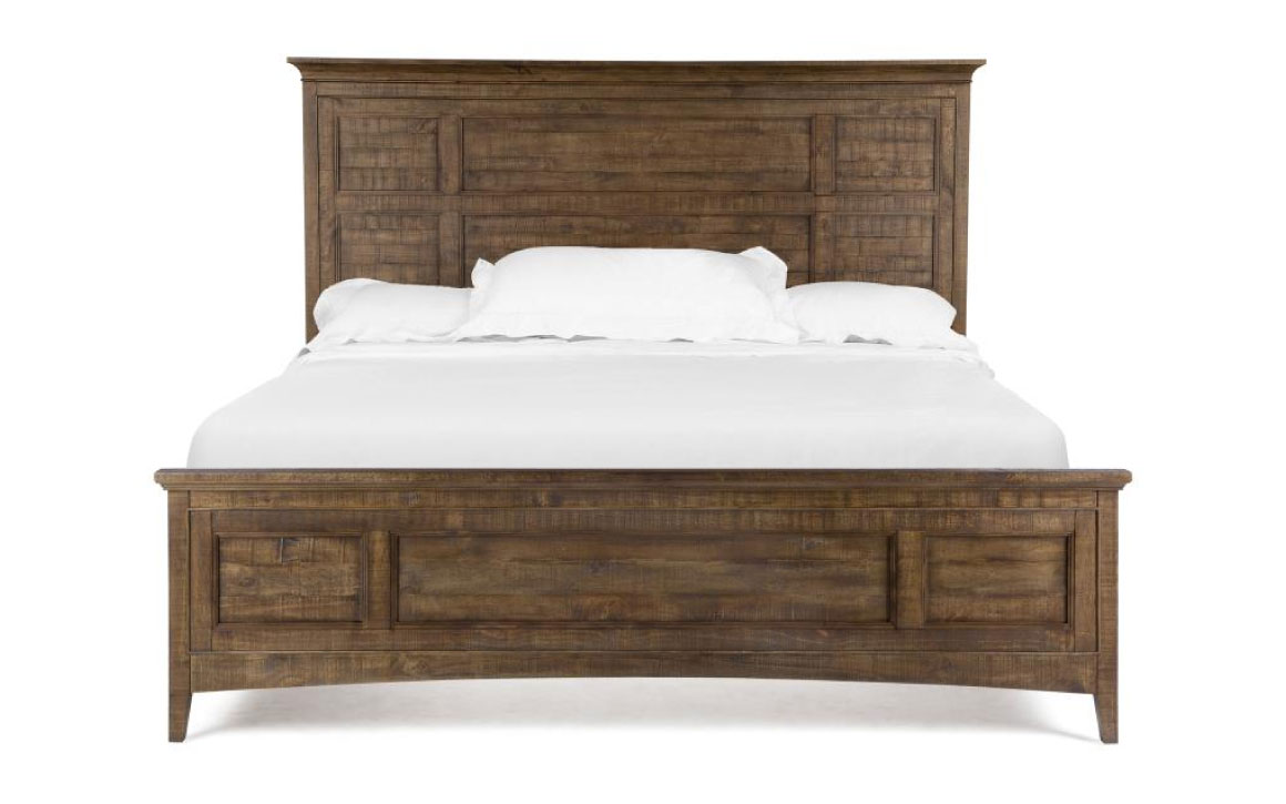 Retreat to Bay Creek Door Chest and enjoy a yummy Toasted Nutmeg finish on Pine veneers and solids, accented by aged bronze hardware. Whether in a second home, a casual city abode or in the suburbs, this collection offers beaded, framed panel drawers over straight shaker inspired legs and plenty of drawers to stow your togs. The rectangular panel bed offers a tailored respite as well as a storage rails alternative.