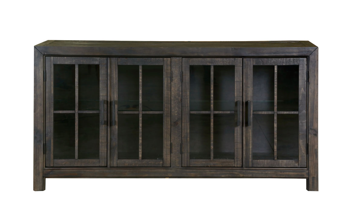 The Bellamy Buffet Curio is perfectly proportioned to accommodate sprawling school crafts, fits of amateur bread baking or the usual holiday assemblage, our classically inspired Bellamy group maintains its pristine demeanor no matter what the task. Piled high with projects as it does all on its own, this group features pine solids and matte black with pewter highlights.