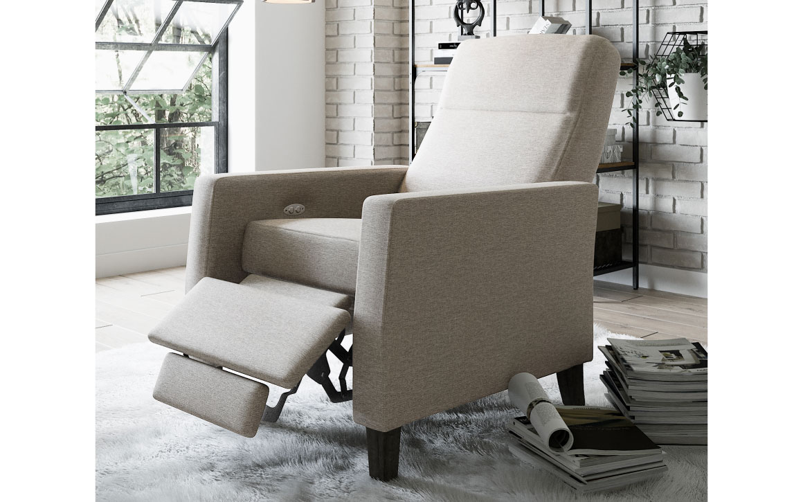The Bexley motorized recliner is made by Vogel, a customizable furniture manufacturer that locally handcrafts their furniture in North York, Toronto.