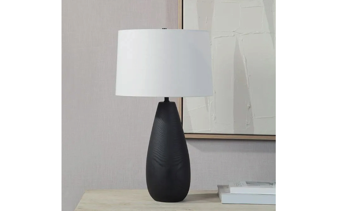 Enhance your interior decor with the striking elegance of the Tala Black Wooden Lamp by Renwil. Standing tall at 30 inches, this table lamp is more than just a lighting solution; it’s a statement piece. The lamp features a sleek, matte black finish that exudes modern sophistication, perfectly complemented by a tapered cream linen shade. This dynamic duo ensures that the Tala Lamp seamlessly integrates into any room, adding a touch of refined style to your space.
