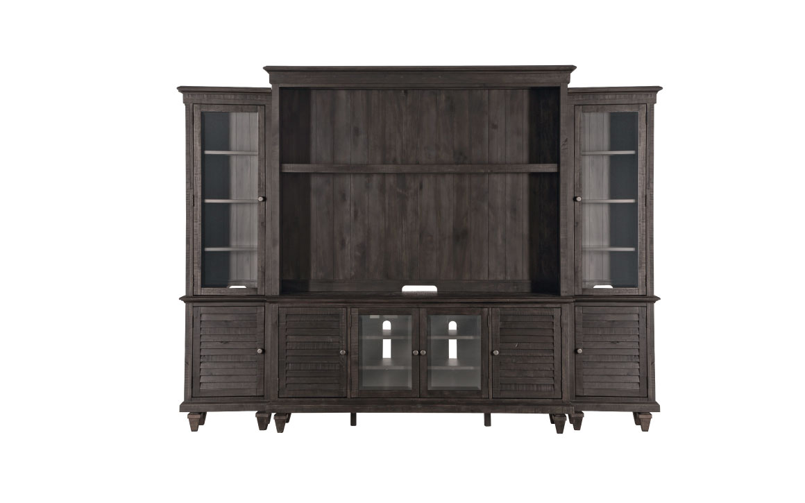 Whether in rustic Napa Valley, the Calistoga Entertainment collection exudes the ambience for handsome yet rugged dwelling. Its weathered charcoal finish and brushed pewter hardware mix effortlessly to create a look that is bold yet refreshing. Relax, unwind, and pretend that your biggest decision of the day is whether to try red or white.