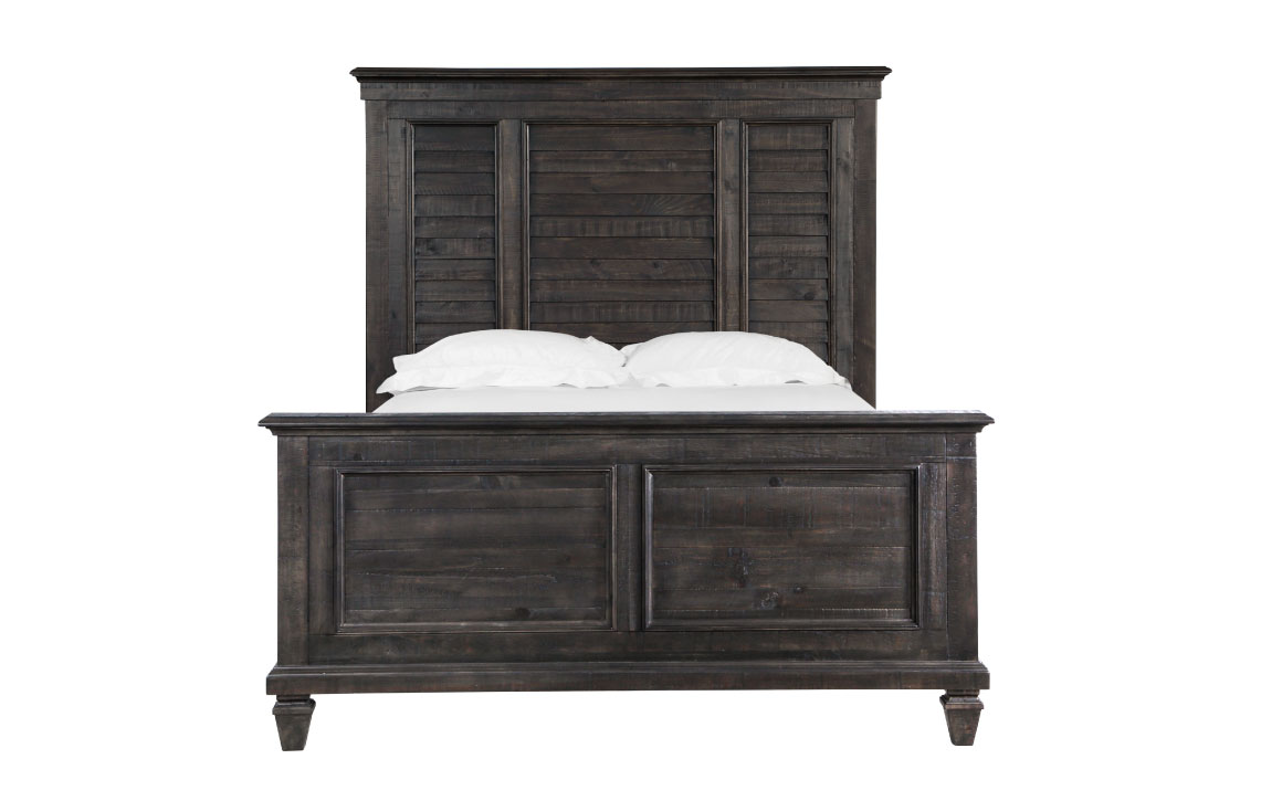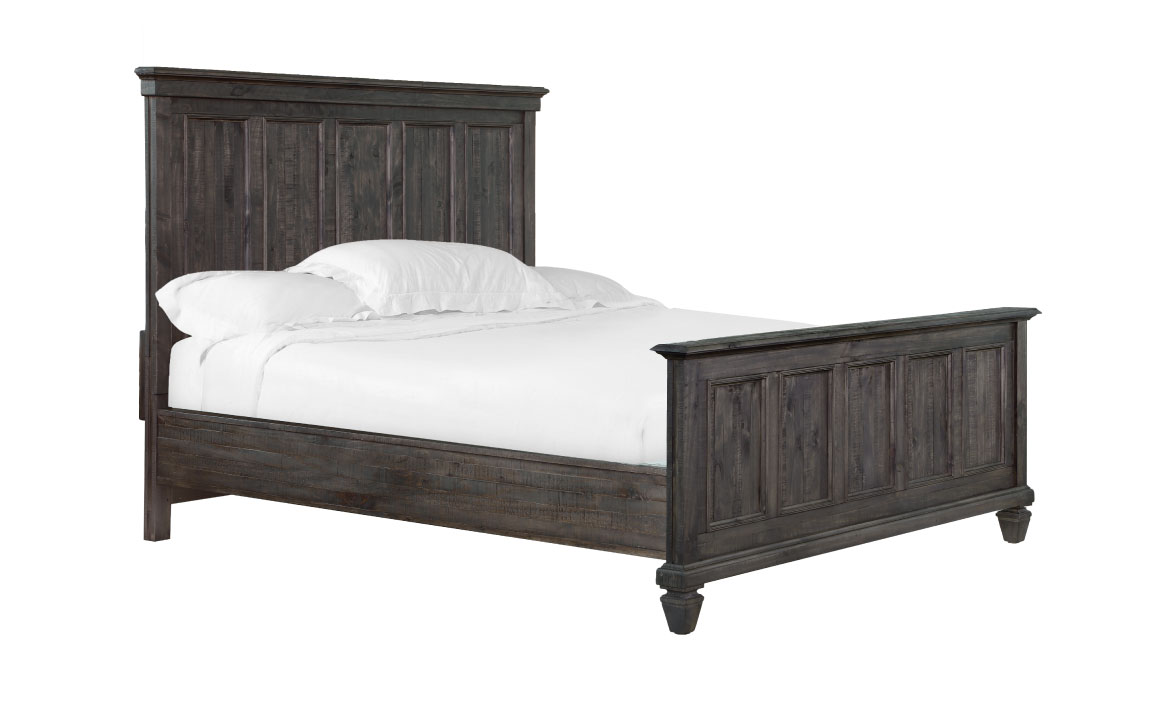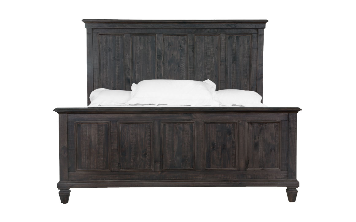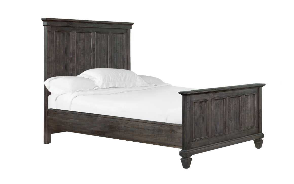 The Calistoga Panel Bed is inspired by the Inns and Wineries in the Napa Valley. The Calistoga Bedroom Collection exudes the ambiance of region. Its distressed charcoal finish and brushed pewter hardware mix effortlessly with graceful curves and soft details to create a look that is bold yet refreshing. Touch lighting on all nightstands, side-mounted ball bearing glides, dust proofed, English and French dovetailed drawer construction, and top drawers with felt lined bottoms are standard Magnussen Home features. Relax, unwind, and pretend that your biggest decision of the day is whether to try red or white.