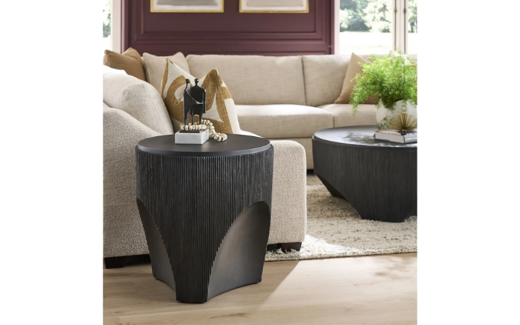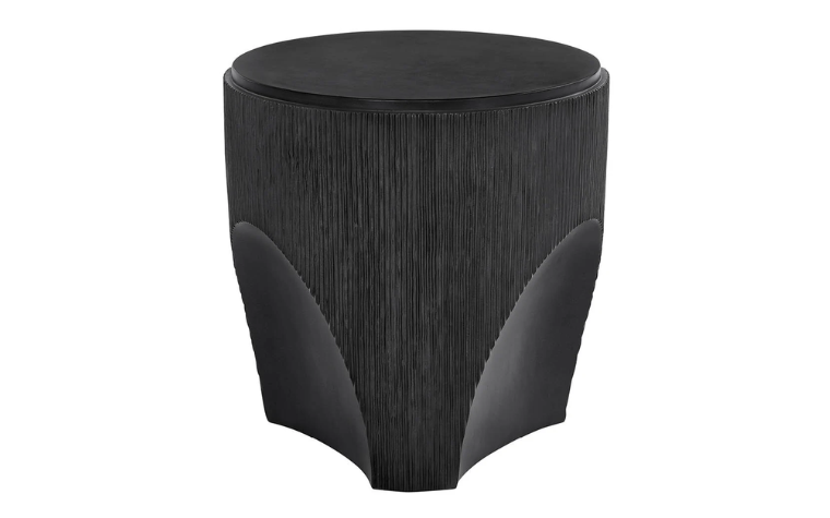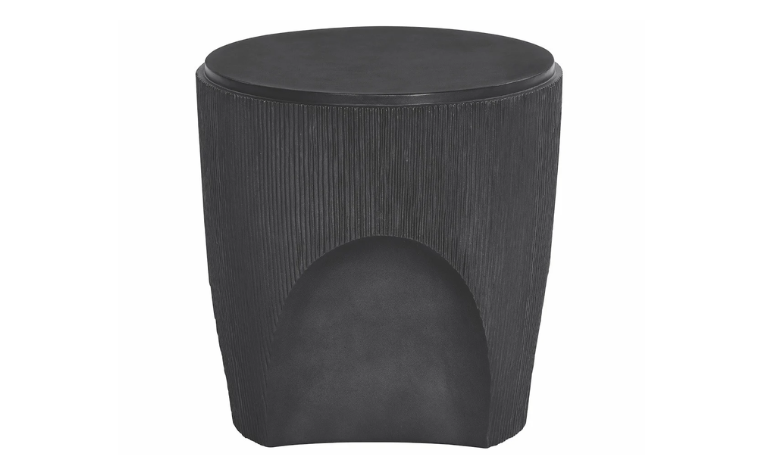 The Cinder End Table features innovative glass-reinforced concrete construction with concave base details and distinctive reeded texturing. The substantial round form provides perfect accent surfaces while showcasing a commitment to interesting shapes and premium materials.