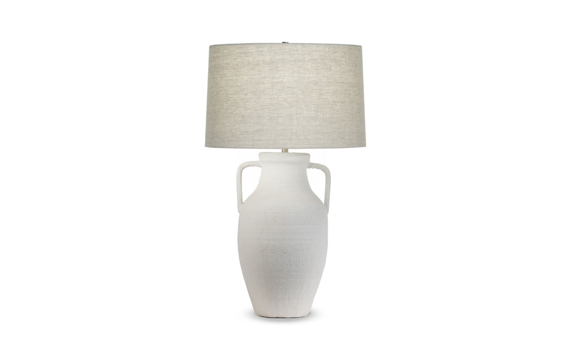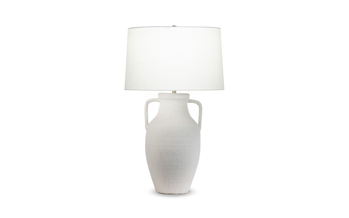 Add a sense of earthy ambience to any interior with the Delilah Table Lamp. The tapered base is evocative of the urns of Ancient Greece with a clean white finish that will lend a classical touch to any room or hallway. The coarse ceramic base of the Delilah lamp gives it a unique, natural texture. The Delilah Tapered Table Lamp will elevate any space with its distinctive shape and size.