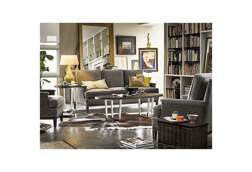 Bring rustic contemporary style to your living room with the Dorchester chrome end table. The table’s mixed-media design highlights clean lines and geometric shaping, including a unique tabletop pattern created by alternating oak grains. A Brownstone finish on the wood top adds rustic appeal, while the chrome-plated finish on the base highlights a sleek contemporary style.