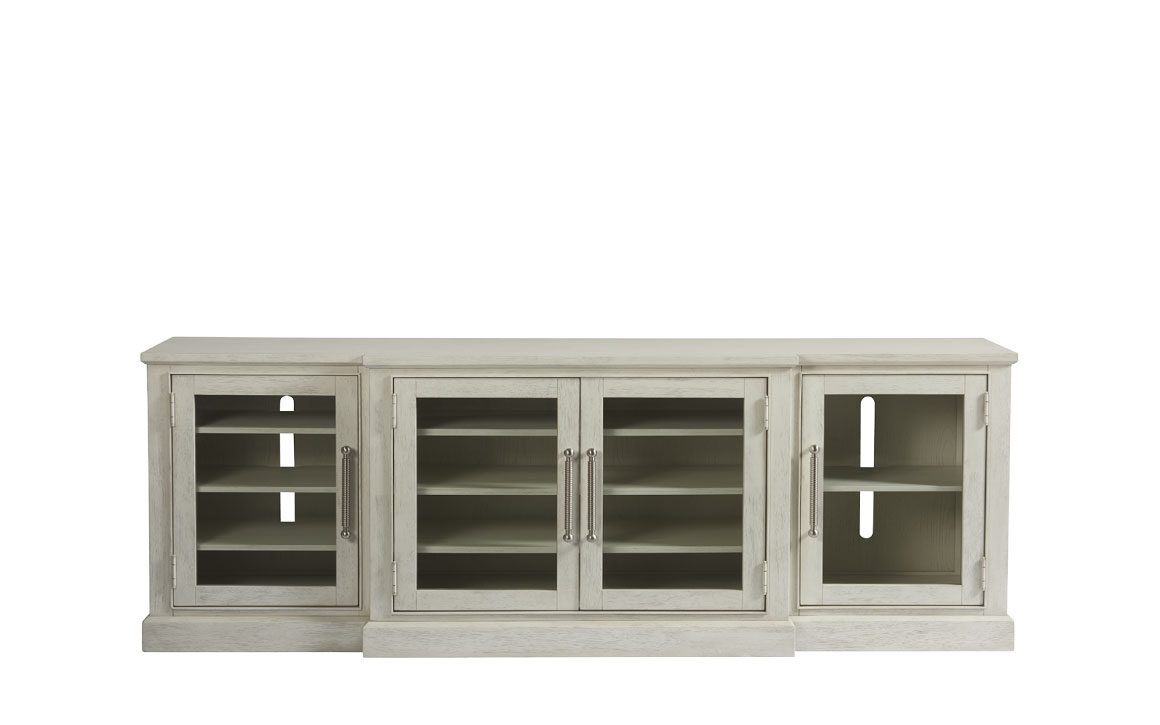 Outfitted with maximum shelving space within a gorgeously light silhouette, the Escape Entertainment Console marries the beauty of casual elegance with functionality, crafted with convenient adjustable shelving and wire management partitions. Available with wood or glass inset panels.