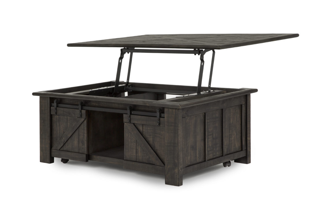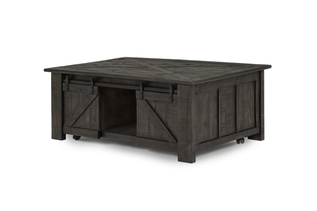 Designer-inspired Weathered Charcoal is the rustically sophisticated finish for the Garrett Lift Top Cocktail table collection. The rectangular lift-top cocktail table features sliding board and batten doors offset by metal hardware, a lift-top for functional ease, and casters for this charming cottage treasure. Garrett radiates the relaxed lifestyle of the Napa Valley region and lures you to relax, unwind, and breathe in the beauty as you enjoy this distinctive style!