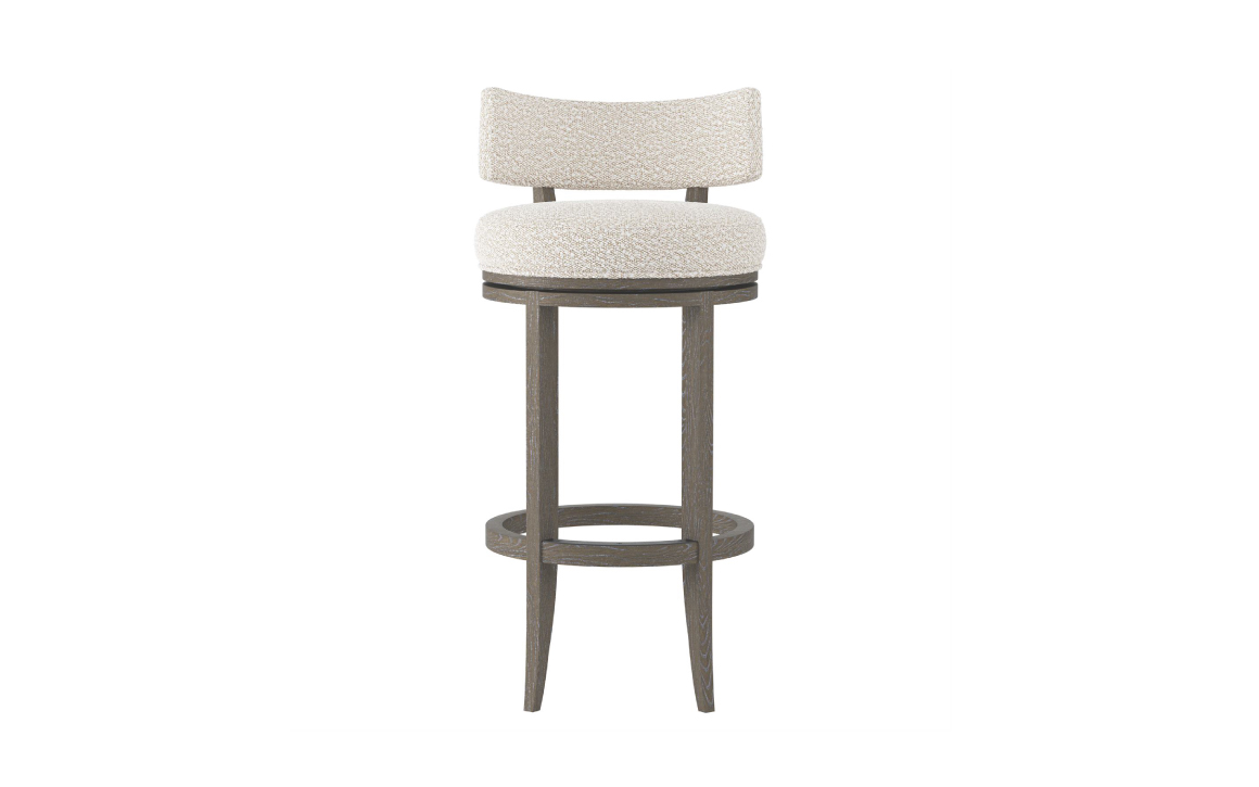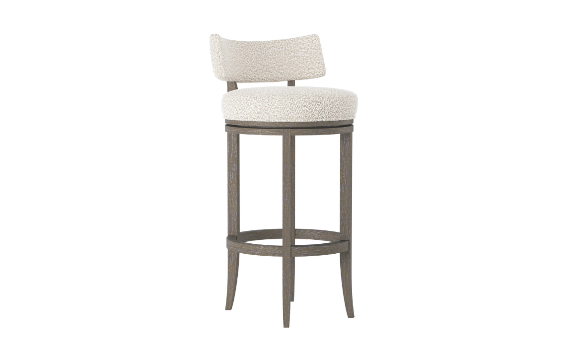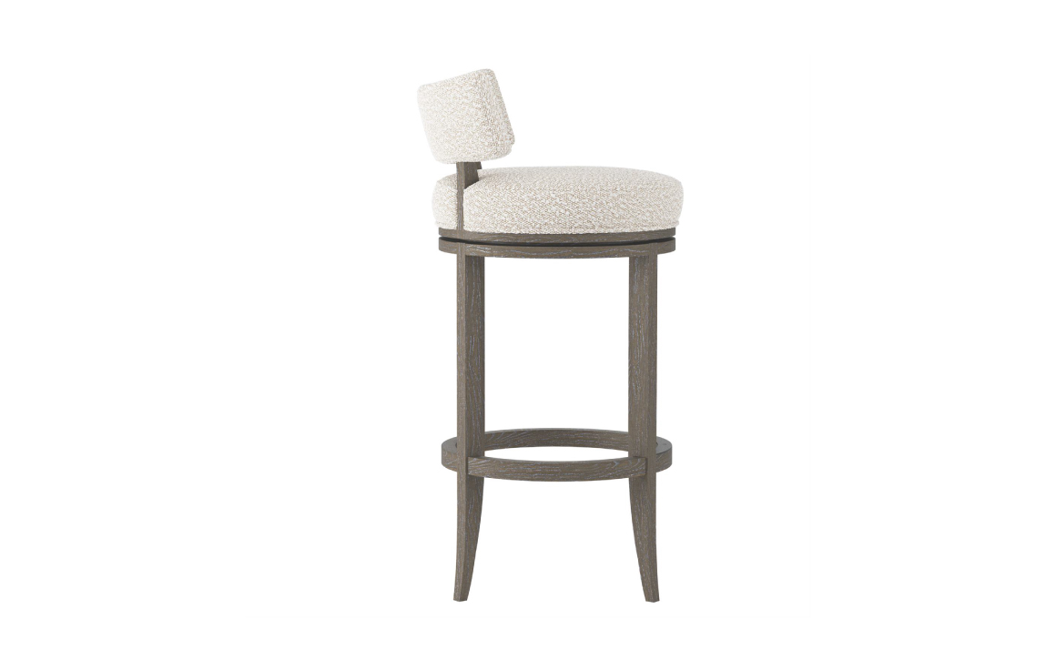 Comfortable and stylish, the Hirsch Swivel Bar Stool from Bernhardt is a perfect blend of functionality and aesthetics. Featuring a round swivel seat and a low, curved back, this transitional bar stool offers both support and a sophisticated silhouette.