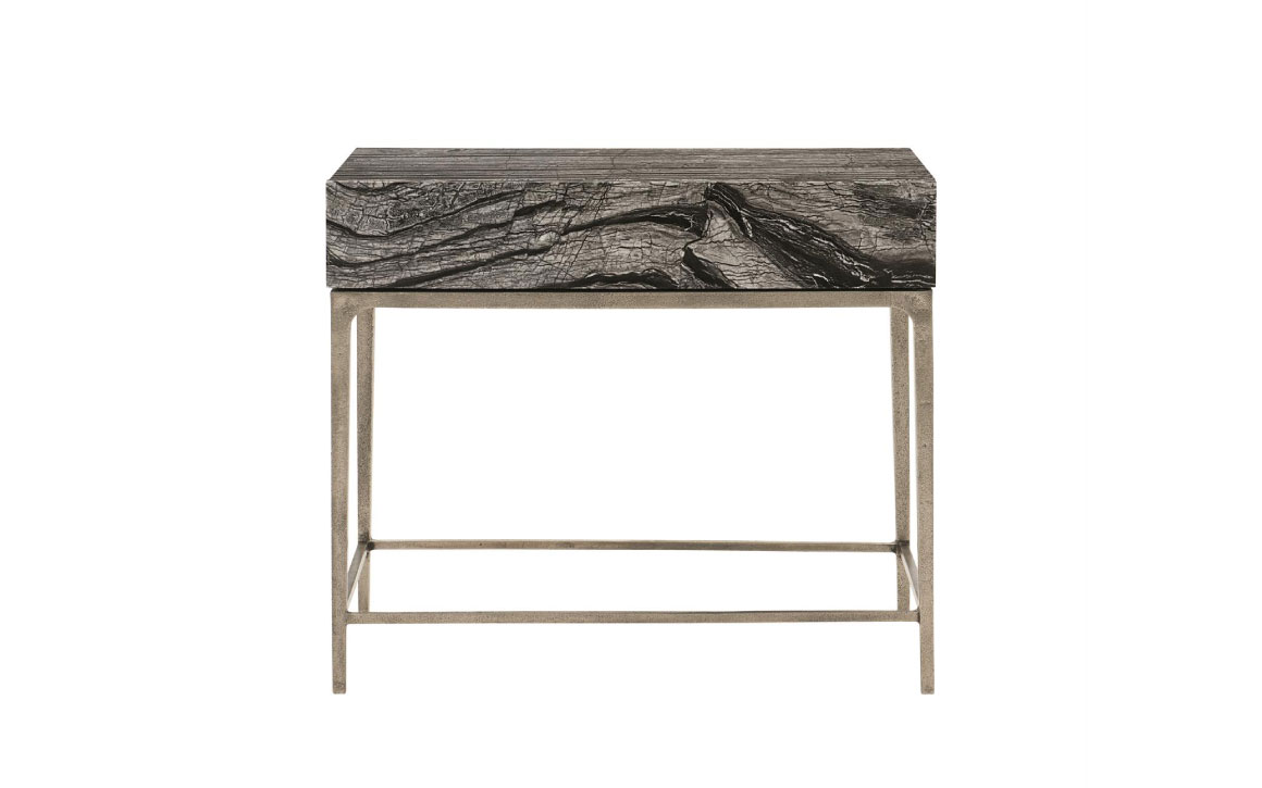 Elevate your space with the Linea Nightstand and indulge in the luxury of Black Forest marble, paired with the artistry of cast aluminum. This statement piece not only exudes opulence but also offers practicality in its design. Transform your bedroom with the Linea Marble Nightstand—a testament to the fusion of luxury, quality, and functionality that defines the Bernhardt Design Philosophy.