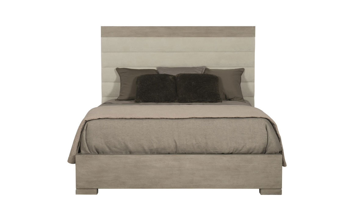 - Wood-framed headboard, footboard and side rails in Cerused Greige Finish.