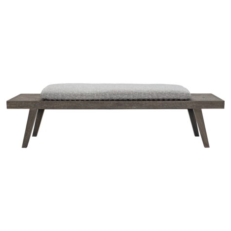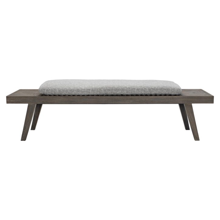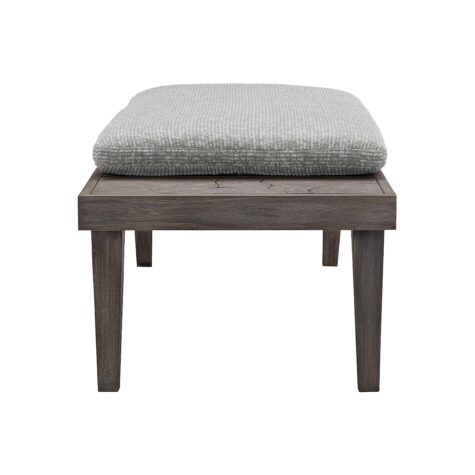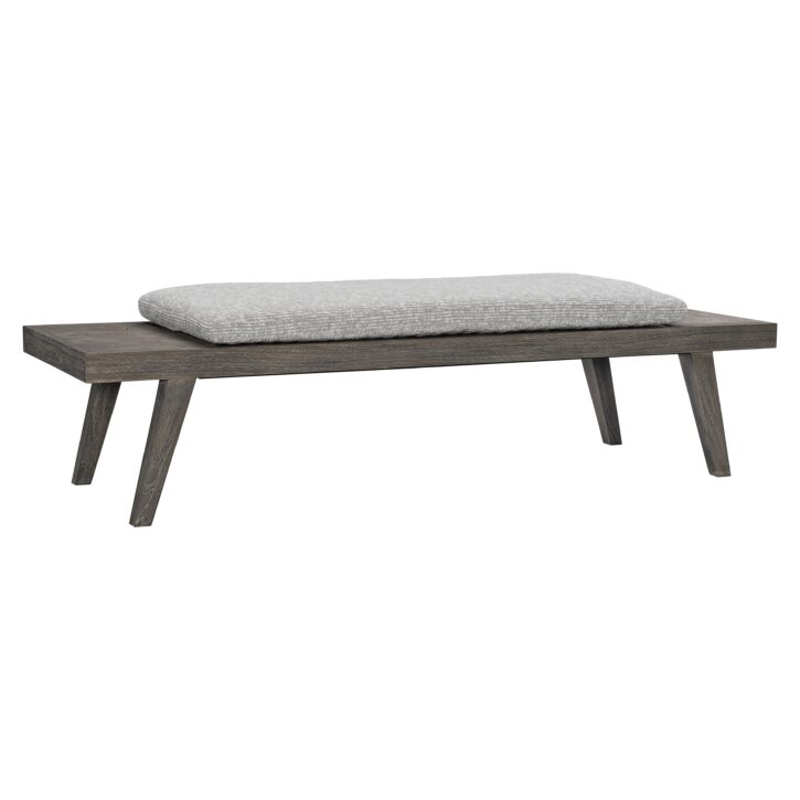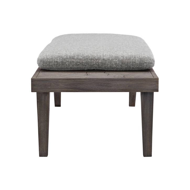 Simple and elegant, the Madura bench reflects a modern sensibility and an Asian flair for form. Canted legs support a rectangular bench seat with open slats in the center, allowing light and air to pass through. Also available without a fabric pad. Finished in Smoked Truffle, the solid teak frame is naturally durable and water-resistant, growing more beautiful as the years pass.