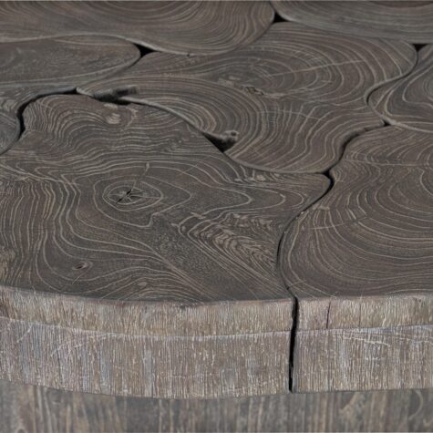 - Top of sliced, carbonized teak in Smoked Truffle finish.