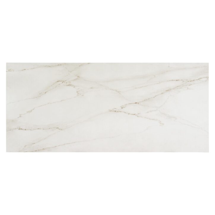 - Extremely durable Dekton rectangular top made of processed natural stone in White Shell finish.