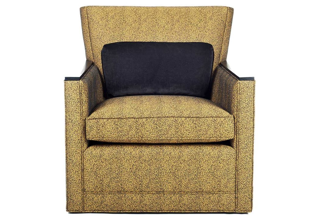 This Max swivel chair design is exquisite in every detail, from the perfectly appointed wood-top arms to the subtle curves that surround you with comfort. The ever-so-slightly slanted back adds another unique touch. Quality construction and fine styling like this are standard features of every Vogel chair. Choose your upholstery from Vogel’s vast selection of fine fabrics and they’ll include the 100% feather-filled kidney pillow in the same fabric. Then select your wood finish and Vogel’s craftsmen will create an extraordinary chair for you that will stand the test of time.