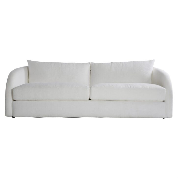 The back of the Palermo outdoor sofa curves softly to the base, offering a restrained elegance. The cushions and back create a lush seat, formed with performance fabrics and weather-resistant foam. The sleek design would be equally at home indoors, but is crafted for outdoor settings.