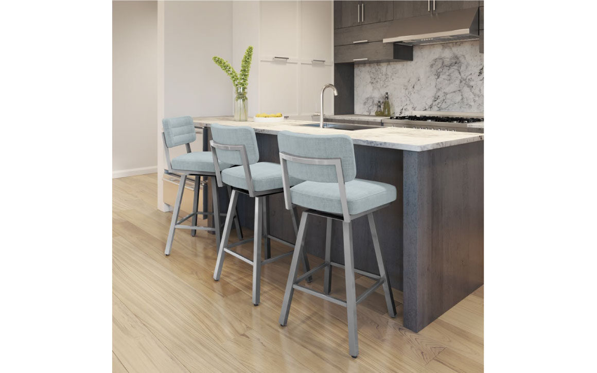Upgrade your seating with the Amisco Phoebe Swivel Stool. Crafted from high-quality North American steel, this stool is built to last, offering superior durability and stability. With a fully customizable upholstered seat and multiple metal finish options, you can design the perfect piece to complement your kitchen, bar, or dining space. Available in both counter and bar heights, the Phoebe Swivel Stool effortlessly blends function with style, making it a standout addition to any home