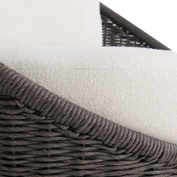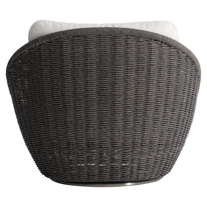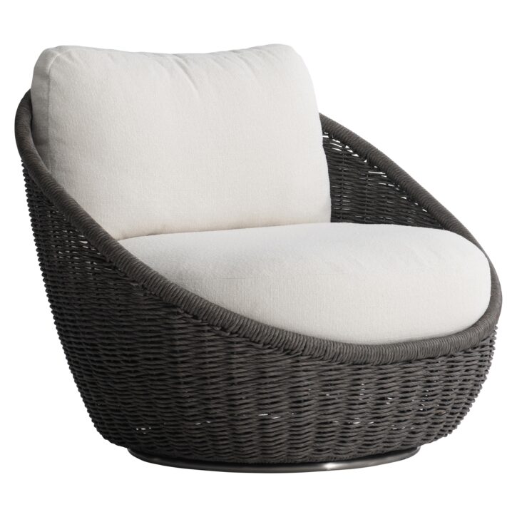 This outdoor swivel chair offers texture and flow in a natural look. A modern spin on the classic papasan chair, the Santa Monica outdoor swivel chair offers texture and flow. The all-weather weave in Pebble finish adds a tactile quality while creating a beautiful, natural look.