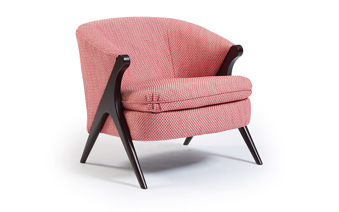 Sink back into this funky chair with bold backing. The Tatiana Chair gives a contemporary spark to any room that needs a style upgrade. This retro accent chair comes in over 700 fabric choices for a customizable addition that will fit the style of any room. Choose a bold solid for a modern look or a neutral pattern for a more subdued feel. The sleek Espresso finish on the wishbone-shaped legs lends a touch of sophistication to this playful design.
