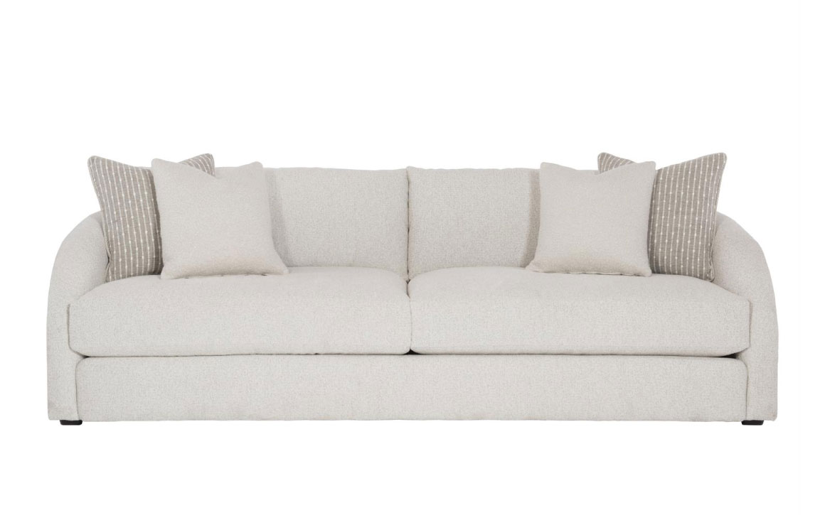Experience the epitome of refined living with the Terra Curved Arm Sofa. This casually elegant masterpiece seamlessly blends sophisticated style with the pinnacle of luxurious comfort. A contemporary interpretation of a classic design, the Terra curved arm sofa boasts inviting plump cushions and throw pillows, each luxuriously supported by subtle wood feet. The sofa’s sloping and curved arms add a touch of sophistication to its understated allure, making it a versatile choice for both formal and casual spaces.