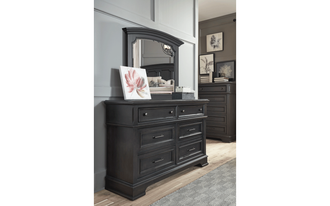 The Townsend Dresser is a rustic transitional dresser with a dark wood finish, featuring 6 drawers and an optional mirror. The drawer storage provides a way to keep your home organized while offering a beautiful design.