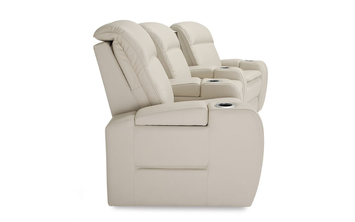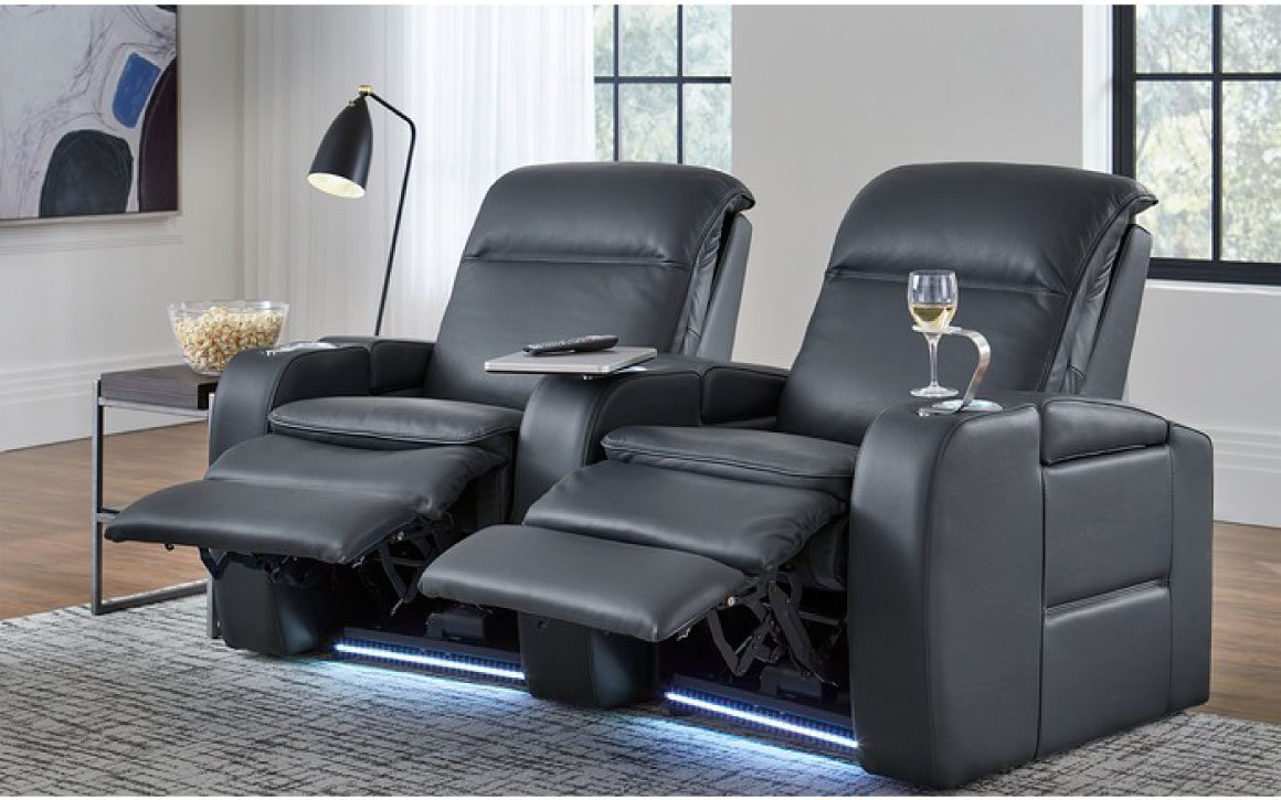 Whether the movie is good or bad, the Vertex promises a delightful experience. Sleek contemporary styling includes a top stitched flange welt detail and a pillowtop seat finished with a clean center seam. A luxurious 1.5″ of memory foam offers uncompromising comfort for long durations, and a full pad-over chaise with extended footrest gives complete support with extra legroom. Power lumbar, headrest, and recline are the starring attractions in this modern motion seat. A memory set key allows you to program your ideal position and return to it automatically with the push of a button. All functions, including LED lighting in the cupholder with seven different colour choices and three intensities, are conveniently controlled from the cupholder. The cupholder also features integrated smart USB charging that only draws power when in use. Wide track arms complete the impressive silhouette, and provide deep storage with optional grommets to add on tables, tablet holders, wineglass holders, or LED flex light. The Vertex is an impressively engineered, stylish choice that will make a welcome addition to any home theatre.
