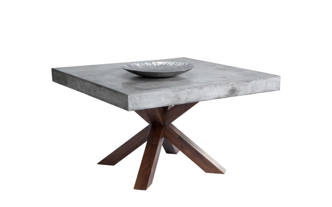 This incredible square Warwick Dining Table features a 10 cm concrete edge top for an industrial look. A contrasting thick base made from acacia wood with a light espresso finish provides the perfect balance of materials. Crafted from a natural concrete mix, each piece will look different, with variations of grey hues that will enhance over time.